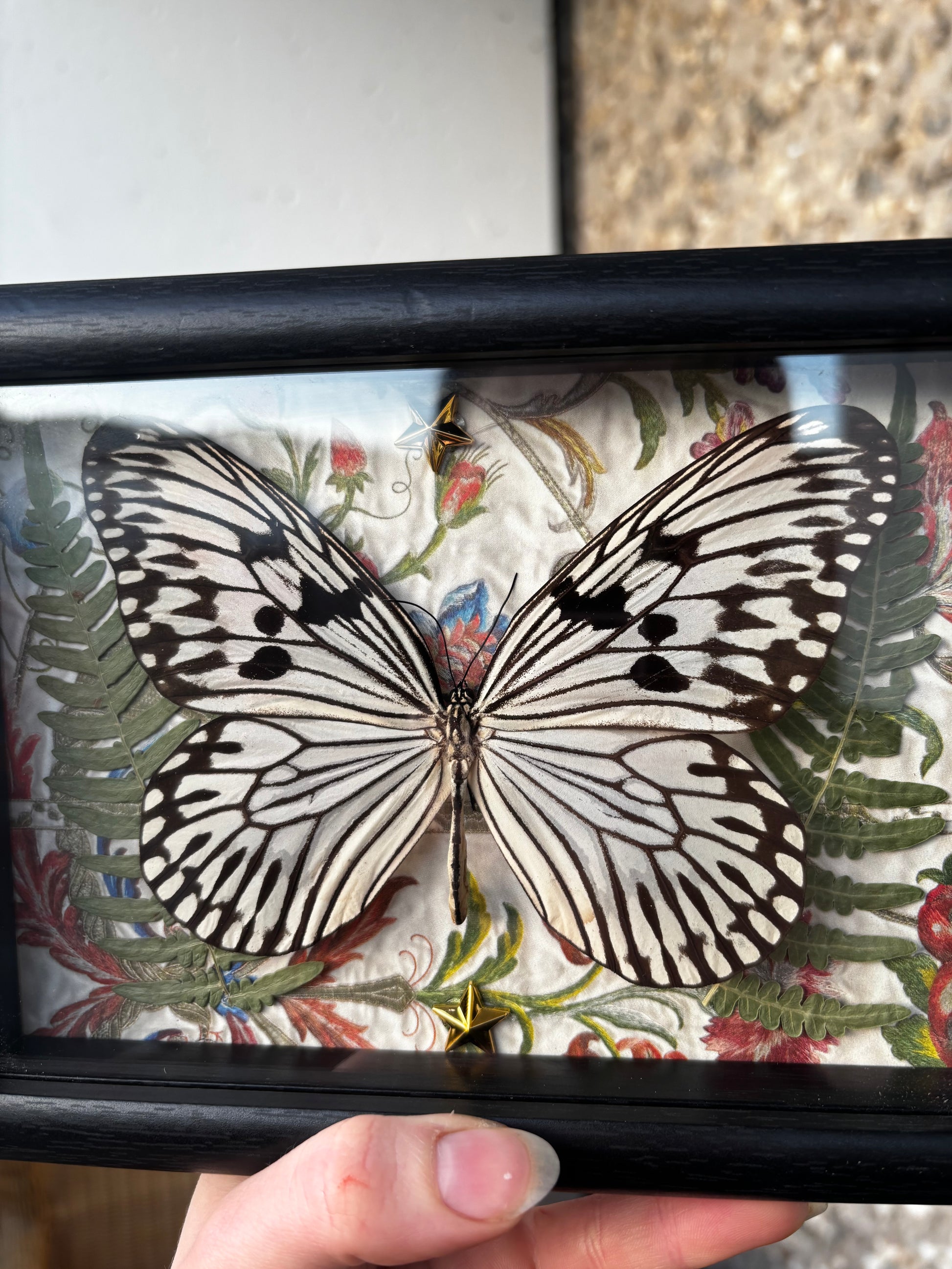 The butterflies are ethically sourced and were collected naturally. Each piece is unique – the colors and patterns of the butterflies may vary slightly.