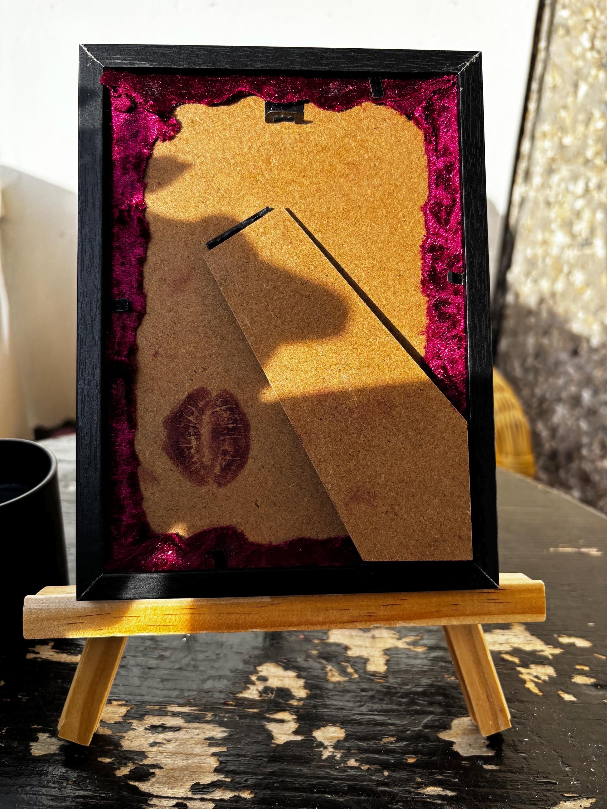 Da es sich um ein handgefertigtes Einzelstück mit natürlichen Materialien handelt, können geringfügige Abweichungen im Aussehen auftreten. Jeder Rahmen ist einzigartig.